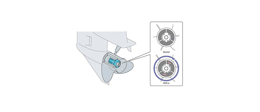 Projetado para reduzir choque e ruído quando em deslocamento, o amortecedor especial do hélice e a alta força do separador encaixado internamente do motor de popa F250, absorvem o choque direto e batidas que usualmente ocorrem no momento do deslocamento para prover uma operação mais silenciosa, suave e certeira.