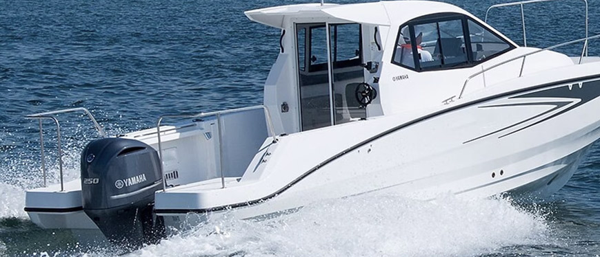 O motor de popa F250 possui um design estruturado e leve do motor apresenta 4 válvulas por cilindro. O sincronismo variável do comando de válvulas (VTC) oferece maior eficiência de combustão na faixa de RPM. Essa combinação de tecnologia avançada oferece potência líder na categoria para a capacidade do motor.
