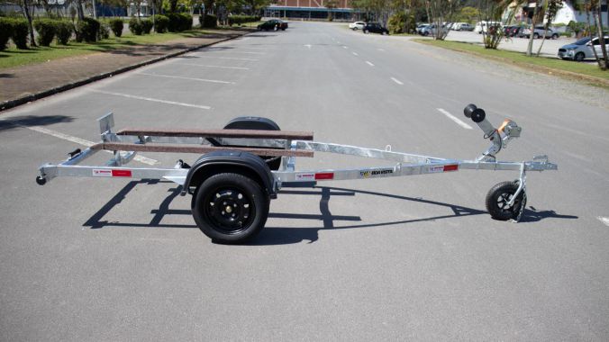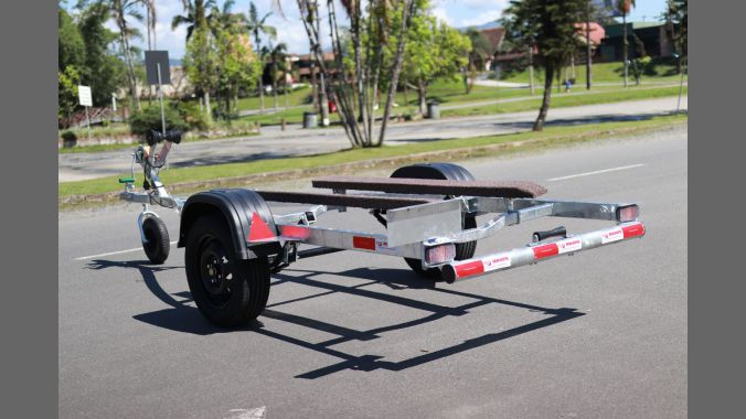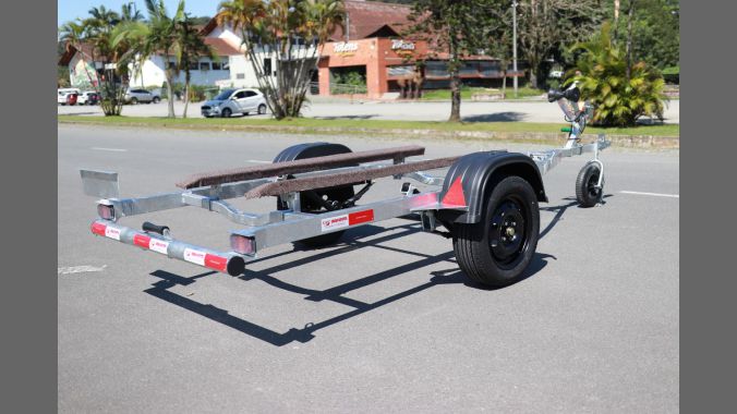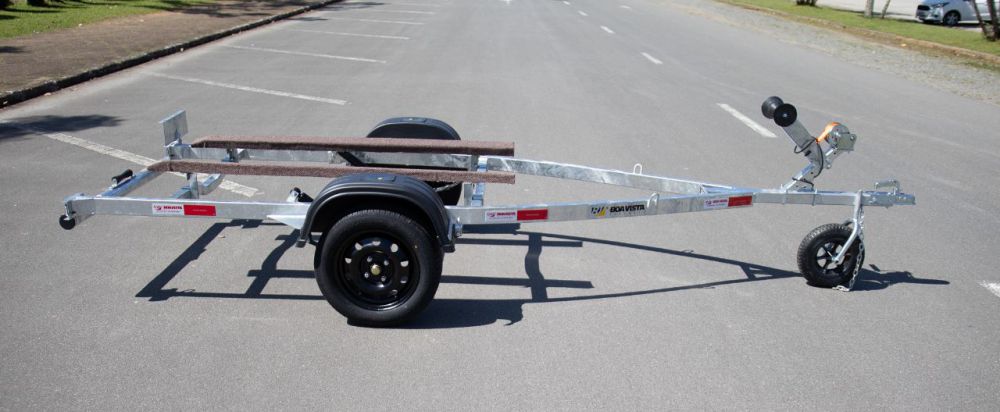 Carreta Boa Vista com chassi em perfil de aço galvanizado, eixo galvanizado a fogo com sistema de torção, capacidade de carga de 750Kg. Pneus 175/70 R13 79T G325, novos, lanternas de Led vedados, à prova d’água com luz de placa, conforme exigência do Inmetro e berços em madeira revestidos com carpete.